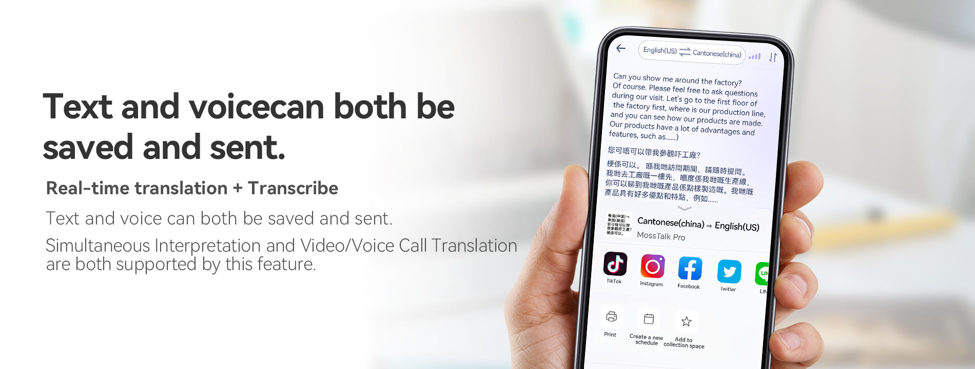 Mosstalk Pro's 0.2-second real-time translation technology uses advanced AI algorithms to instantly recognize and translate multiple languages, ensuring smooth and seamless communication. This technology is particularly suitable for business meetings and international interactions, enhancing communication efficiency and accuracy.